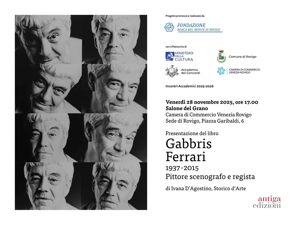 Presentazione del libro Gabbris Ferrari (1937-2015). Pittore Scenografo e Regista a cura dell’Autore, lo Storico d’Arte Ivana D’Agostino. Progetto promosso e realizzato dalla Fondazione Banca del Monte di Rovigo con il Patrocinio del Ministero della Cultura.