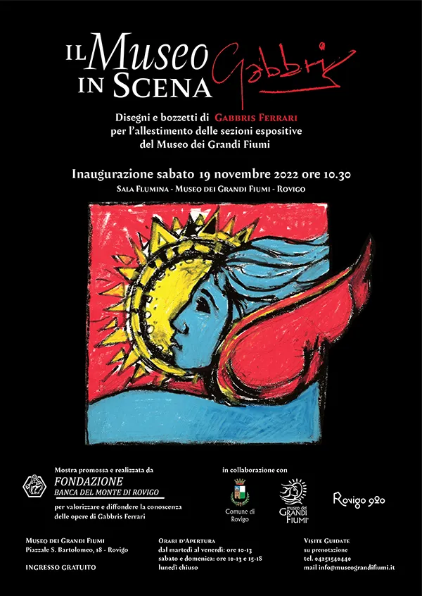 << La Fondazione Banca del Monte di Rovigo ha proposto al Comune di Rovigo l’idea, prontamente accolta, di realizzare al Museo dei Grandi Fiumi una mostra sui disegni relativi al progetto di allestimento del museo ad opera di Gabbris Ferrari>> dichiara il Presidente Giorgio Lazzarini. << La Fondazione intende assolvere ad un impegno morale nei confronti di un artista e di una illustre personalità che si è speso generosamente sia per la città che per la Fondazione: Ferrari è stato un componente degli organi istituzionali e ha collaborato fattivamente nella realizzazione di progetti culturali a favore della comunità. Esprimo grande soddisfazione per questa realizzata mostra che conferisce senz’altro al Museo ulteriore valore.